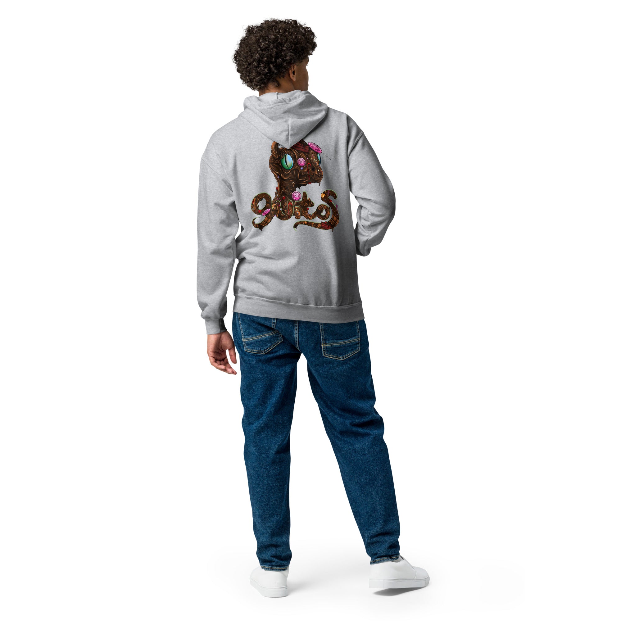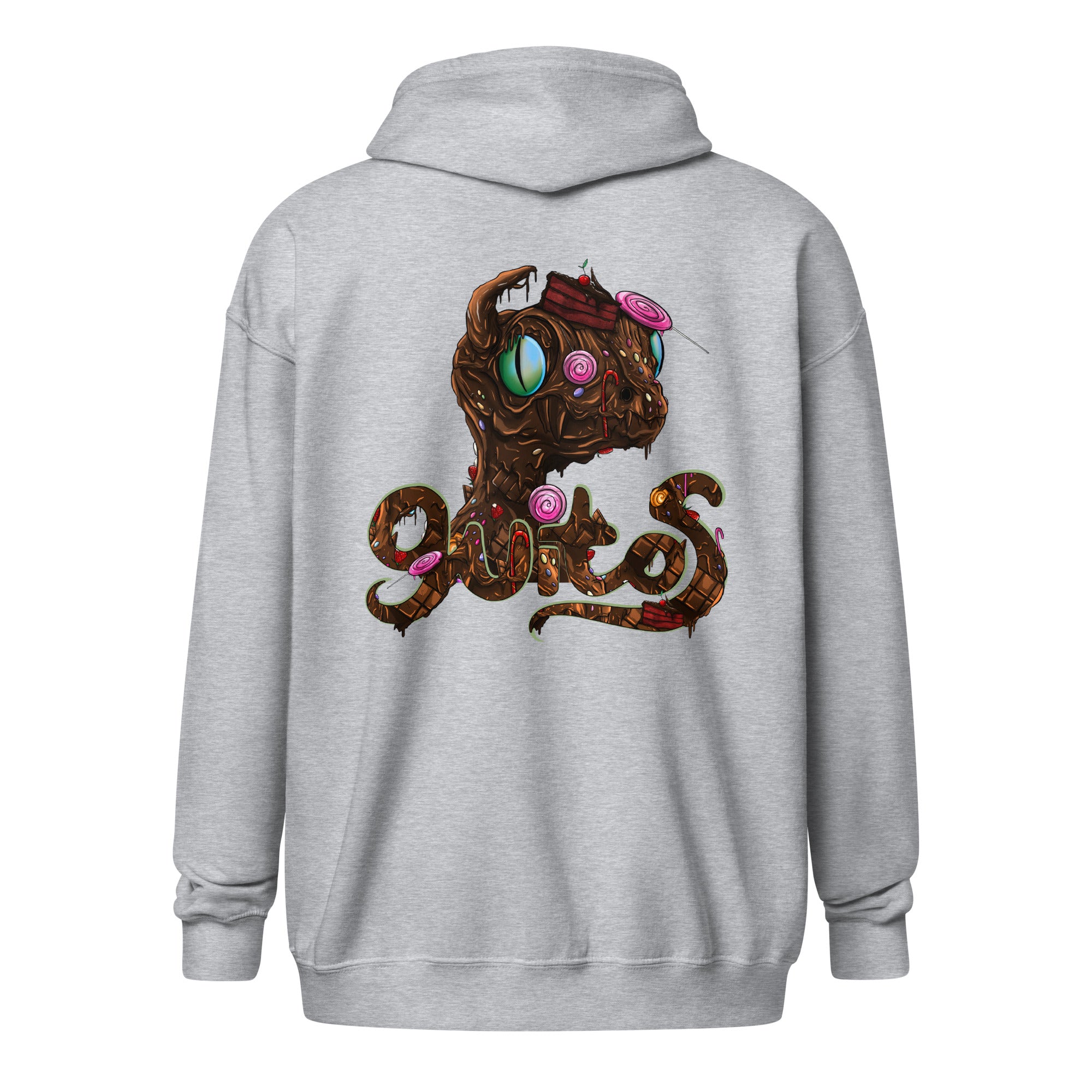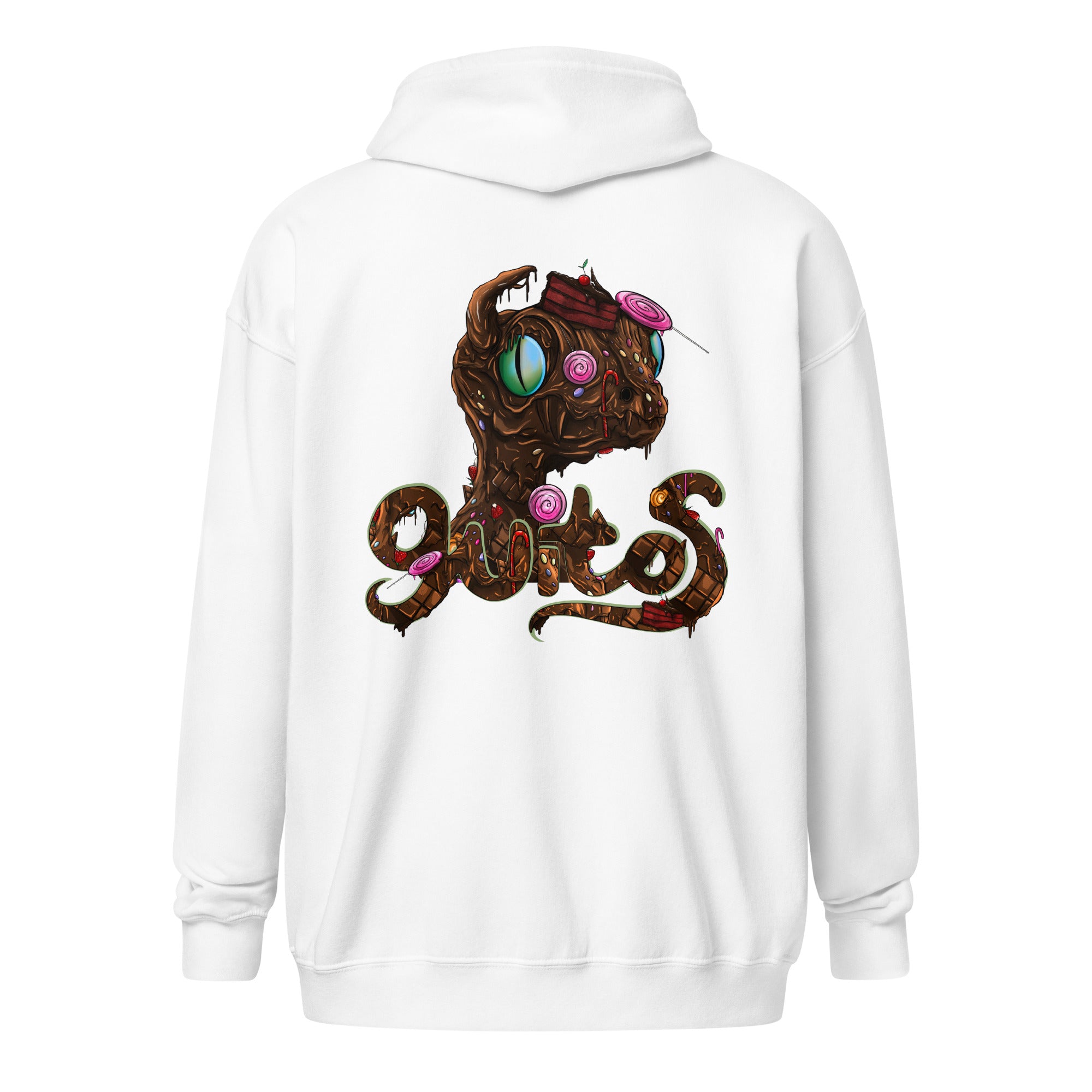 Designed with style and comfort in mind, this heavy blend guitos brand zip-up hoodie featuring chocolate and sweets gecko Stash will quickly become your new favorite. It’s made from soft fleece-like material blend inside and outside, with a sturdy metal zipper, convenient front pockets, and a hood with color-matched drawstrings.